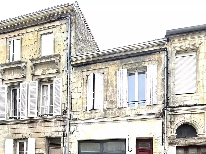 Libourne Appartement au 1 premier étage composé d'une cuisine équipée ouverte sur un séjour, une chambre et salle de bains, wc . Copropriété de 2 lots (Pas de procédure en cours). Charges annuelles : 960 euros.