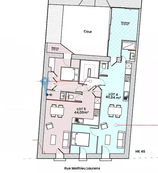 | 55 m² - 3 pièces - 2 chambres | Dernier étage (1er) |