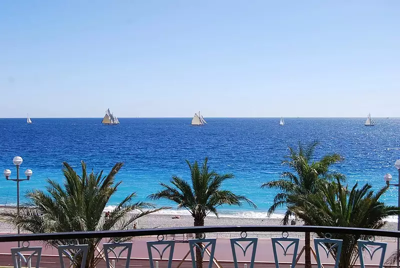 Exclusivité Beau 3P de 55M2 avec belle terrasse en arrondi face à la mer dans une résidence de prestige sur la fameuse Promenade des Anglais, proche du centre ville.