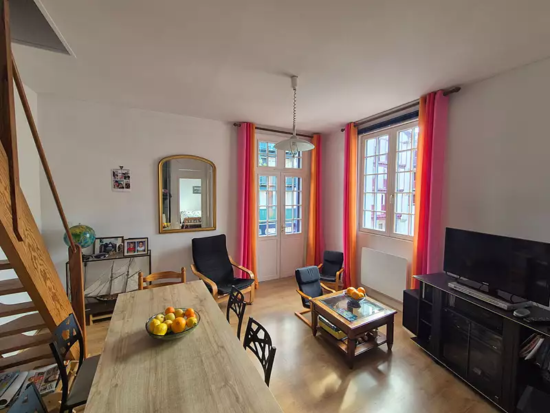 Appartement T4 en duplex idéalement situé en plein coeur du quartier Fargeot au centre ville de St Jean de Luz. Niché au 1er étage d'une ancienne maison basque des années 1920 vous apprécierez l'authenticité et le cachet de la bâtisse. Exposé Sud - Sud Ouest, deux balcons, logement très lumineux. Parking aisé dans la rue. Copropriété de 7 lots (Pas de procédure en cours). Charges annuelles : 1080 euros.