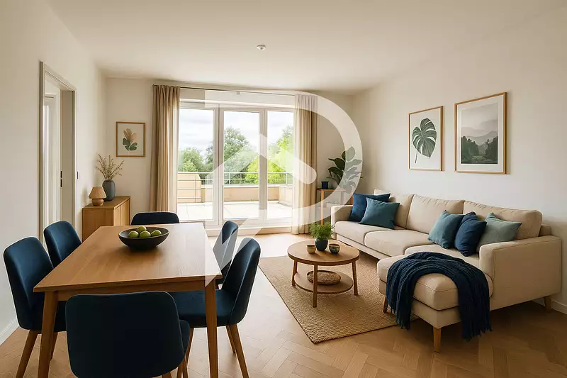 En EXCLUSIVITÉ, nouveauté sur le marché thionvillois et plus particulièrement secteur de Garche. Disponible immédiatement ! T2 au 1er étage sur 2 dans une petite copropriété de 13 logements haut de gamme à taille humaine et aux tons chaleureux ; elle se distingue des autres nouvelles résidences sur le secteur. Les prestations sont de qualité et les finitions parfaites ! L'appartement donne sur l'arrière de la résidence, au calme ! L'appartement est PMR, totalement adapté à toutes personnes même en situation de mobilité réduite. Ascenseur, visiophone, portail sécurisé, espaces verts, VMC, fibre optique. Le bien vient juste d'être livré et est à personnaliser selon vos besoins, vos goûts et votre budget. Nous avons réalisé des visuels avec quelques idées d'aménagement de cuisine ouverte, de salle de bain, de pièce de vie et de chambre, pour vous aider à vous projeter. Ces propositions ne sont pas contractuelles. A noter que toutes les peintures murales ont été réalisées, il ne s'agit pas de sous-couches. La pièce de vie est ultra lumineuse et continue avec la cuisine (le tout fait 25m2), et surtout donne directement sur la grande terrasse couverte de 15m2, sur plots et exposée Sud. Baie vitrée 3 vantaux, DV et oscillo. La terrasse est équipée d'un point lumineux et de prises électriques pour y installer votre plancha, et décoration lumineuse par exemple. La chambre de 12,55 m2 joliment parquetée bénéficie également d'un accès direct à cette terrasse, ce qui en fait un bien rare sur le marché, surtout pour un T2. La salle de douche avec WC suspendu est équipée un minimum. Là encore, vous aurez tout le loisir de laisser voguer votre imagination pour finir de l'aménager. Les tons déjà présents sont doux : taupe et blanc. L'entrée est équipée d'un placard intégré et peut encore être meublée tant elle est large (PMR). Les ++ : Adapté PMR Garanties décennales jusque 2035 Place de stationnement privative et sécurisée par un portail à commande électrique (2ème place possible en option) Cave privée avec électricité Chauffage au gaz par le sol Dernières Normes de construction RT2020 Le montant des charges de copropriété a été estimé à 110 euros/mois. Cela comprend les frais d'entretien de l'ascenseur, du portail électrique et des visiophones, l'assurance du bâtiment, l'électricité et entretien des communs, les honoraires du syndic, l'eau froide. Ce bien vous plait, correspond à votre projet de bien, et rentre dans votre budget ? Je me tiens à votre disposition pour répondre à vos questions, vous le faire visiter pour vous y projeter. Tél : 03.82.87.77.17 ou 06.67.91.21.78 Email : ou Les informations sur les risques auxquels ce bien est exposé sont disponibles sur le site Géorisques : www.georisques.gouv.fr Copropriété de 87 lots - dont 26 lots habitation.