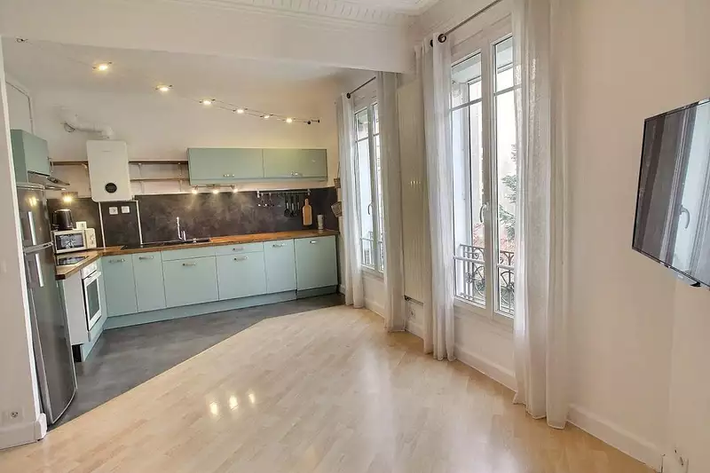 VINCENNES à 5 minutes du RER A, Proche Métro, écoles et commerces, 3 pièces en parfait état rénové récemment dans immeuble ancien bien entretenu comprenant : une entrée avec rangements, un séjour plein Sud avec cuisine ouverte et équipée, une chambre parentale sur jardin avec rangements, un bureau ou petite chambre sur jardin, une salle d'eau récente avec WC, une grande cave en s/sol - Lumineux en double exposition - Proche toutes commodités