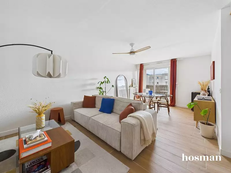 Un séjour lumineux ouvrant sur un balcon de 5 m²