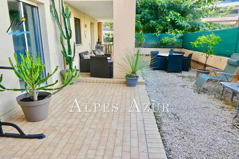 BELLE SITUATION RÉSIDENTIELLE et DOUCEUR de VIVRE, au calme, proche toutes commodités, plages, commerces, restaurants, transports, gare et future ligne du tramway sur le secteur animé et prisé de L'Hippodrome sur Cagnes sur Mer, notre agence vous invite à découvrir ce charmant 3 pièces d'angle en rez de jardin surélevé au sein d'une jolie résidence sécurisée, il bénéficie d'un bel extérieur présentant une vaste terrasse d'angle prolongée par un jardinet offrant une belle qualité de vie en plein air, les intérieurs ont été rénovés dégageant une ambiance moderne et chaleureuse, la pièce de vie réunissant séjour et cuisine équipée profite de la terrasse couverte, 2 chambres dont une ouvre sur l'extérieur, la salle de douche dispose d'un branchement pour lave linge, le toilette est séparé, un parking aérien sécurisé complète ce bien COUP de C¼UR, 409.000 euros, Honoraires à la charge du Vendeur, Biens soumis au statut de la copropriété, Cabinet ALPES AZUR Immobilier Le spécialiste vente appartements 04.93.20.10.00.