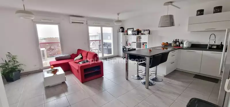 Coup de cœur absolu pour ce grand T2 en dernier étage avec une terrasse plein sud et un double garage à Istres, . Vaste séjour avec cuisine ouverte équipée schmitt dont un réfrigérateur américain siemens et climatisation, une chambre avec rangement et clim, salle d'eau avec miroir antibuée, wc avec buanderie, fibre, terrasse plein sud en vue dominante et sans vis à vis. Equipement cuisine schmitt : garage de 25m² en sous-sol accès ascenseur idéal pour voiture + moto, aucun travaux à prévoir au goût du jour, peu de charges eau incluse(pompe à chaleur) DPE A. A deux pas du centre ville et du lycée Coutarel (ce bien est cadastré T3, potentiel 2ème chambre dans le séjour). Petite résidence sécurisée récente! Nombre de lots de la copropriété: 49, Montant moyen de la quote-part annuelle de charges (budget prévisionnel) (EAU (pompe à chaleur)ET PARTIES COMMUNES) : 1320€ soit 110€ par mois. Les honoraires sont à la charge du vendeur.