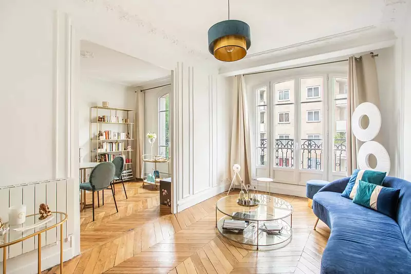 Dans un immeuble 1905, aux parties communes bien entretenues, appartement situé au deuxième étage, accessible par ascenseur. Récemment rénové, il préserve tout le charme de l'haussmannien (moulures, cheminée, poêle prussien, parquet en Point de Hongrie). Aujourd'hui, il se compose ainsi :