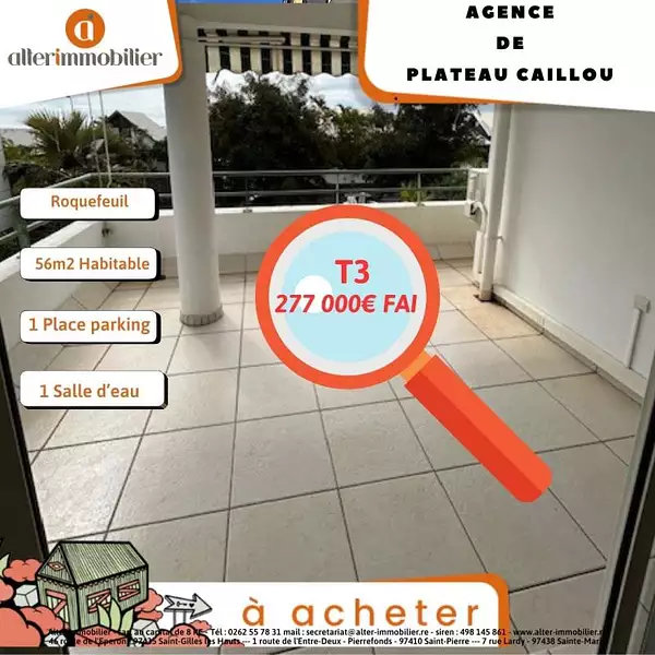 Alter Immobilier vous propose, dans le quartier prisé de Mont-Roquefeuil, un appartement de type T3 situé dans une résidence sécurisée. Idéalement placé, il bénéficie de la proximité des commerces, écoles, transports en commun, de la route des Tamarins, et se trouve à seulement 5 minutes des plages.