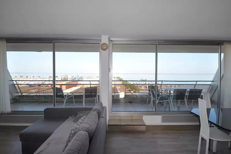 Il se compose d'un salon séjour, d'une cuisine, d'une chambre et d'une cabine comprenant 2 lits superposés et placards, une salle d'eau avec toilettes. Une terrasse spacieuse d'environ 17 m² entièrement carrelée vous permettra de profiter de l'extérieur en plus de la vue.