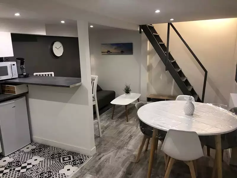 Il se compose d'une entrée , cuisine équipée ouverte sur belle pièce principale lumineuse de 18,74 m² .