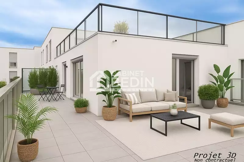 T3 avec grande terrasse, ascenseur, parking. BORDEAUX CHARTRONS : Superbe appartement de 3 pièces d’environ 57m² avec une magnifique terrasse de 66m².