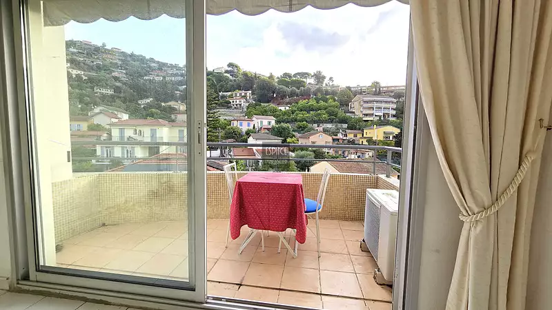 Menton, quartier recherché du Borrigo, découvrez ce 3 pièces en DERNIER ÉTAGE avec une CAVE et un grand GARAGE inclus dans le prix.