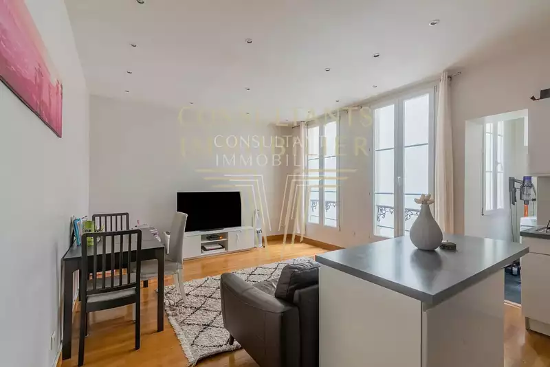 Dans un immeuble ancien avec ascenseur, ce bien d'une superficie de 57m² se compose comme suit: une entrée, un séjour avec cuisine ouverte entièrement aménagée et équipée, un espace buanderie, deux chambres en enfilade, une salle de bains et toilettes séparées.