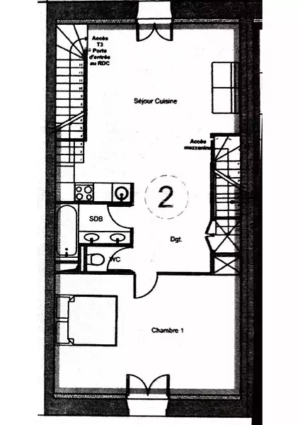 | 57 m² - 1 pièce | Dernier étage (1er) |