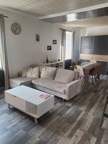Il comprends une belle pièce à vivre avec coin salon, salle à manger, une petite cuisine ouverte, une première chambre de presque 9 m2, d'une salle d'eau avec wc.