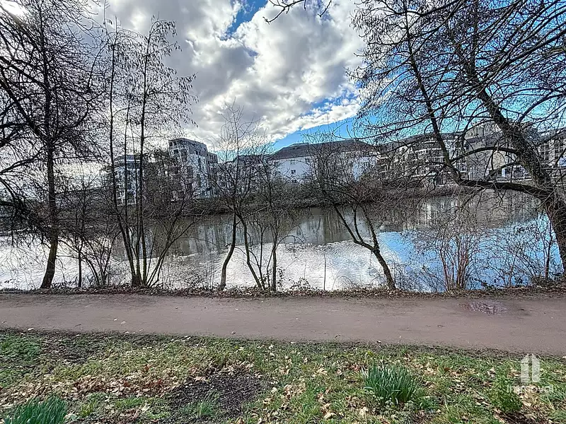 une cuisine, un vaste et lumineux séjour donnant sur l'Ill, une chambre, une salle de bains, un WC et un Dégagement.