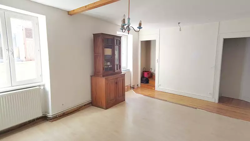 Un bel escalier en pierre vous mènera à l’étage, où se situe un séjour lumineux avec espace cuisine à personnaliser. Le dernier niveau accueille une chambre confortable et une salle d’eau avec WC.