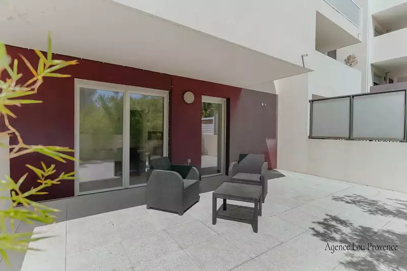 Il dispose de deux belles terrasses exposées sud de 77 m². Le bien de 58 m² en rez-de-chaussée avec ascenseur se compose de la manière suivante : une entrée desservant une chambre avec rangements, une salle de bains, un WC indépendant, un salon/séjour desservant une deuxième chambre. Chaque pièce principale a un accès direct aux terrasses. Cet appartement est aux normes PMR.