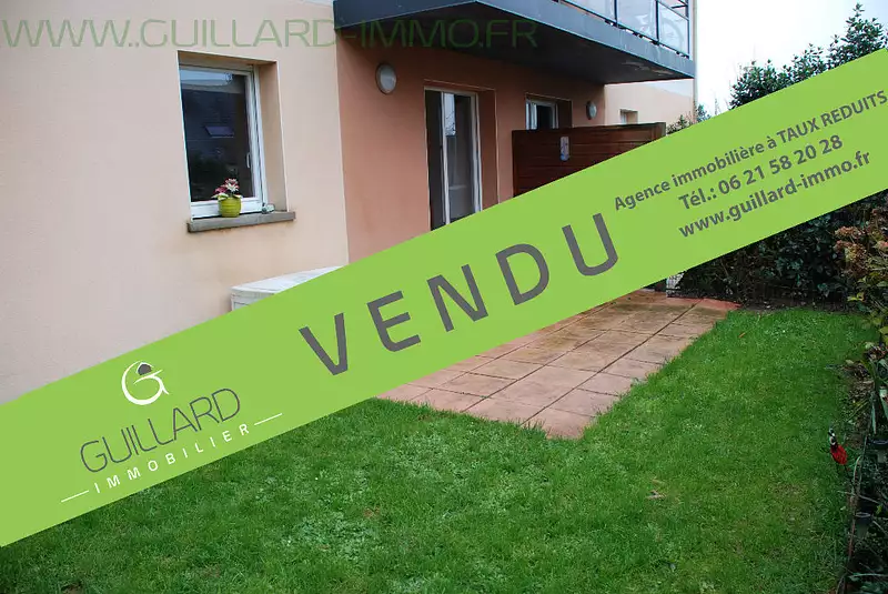 VENDUE par l'agence GUILLARD IMMOBILIER. Il offre un salon-séjour donnant sur la terrasse et un jardin clos, une cuisine, deux chambres avec de grands placards, une salle de bains, wc séparé. Un garage boxé complète le tout. Interlocutrice unique à votre écoute pour vous accompagner efficacement. J'assure un suivi régulier, en toute transparence, pour faire aboutir votre projet de vente ou d'achat. Contactez-moi au 06 21 58 20 28 ! (4.02 % honoraires TTC à la charge de l'acquéreur.)