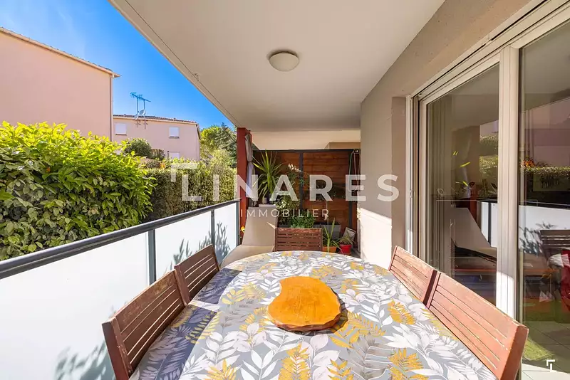 LE PAISIBLE - Appartement T3 de 58m² - 2 Terrasses - Box double fermé (en sus) - 13011 LES CAMOINS Llinares immobilier vous propose: LE PAISIBLE, un charmant appartement T3 de 58m², niché au sein d'une résidence prisée, parfaitement entretenue et idéalement située dans le secteur très recherché des Camoins, à deux pas des commerces. Vous serez accueillis par une entrée fonctionnelle avec un grand placard de rangement, ouvrant sur un double salon-séjour lumineux et une cuisine ouverte, moderne et entièrement équipée. Cet espace de vie s'ouvre sur une spacieuse terrasse à l'abri des regards, parfaite pour profiter de moments conviviaux en famille ou entre amis, en toute tranquillité. Côté nuit, deux chambres confortables, dont une avec terrasse privative, se partagent une élégante salle de bain, intégrant une buanderie et des wc séparés. Vous avez la possibilité d'acquérir un box double fermé de 25m² en sous-sol, en supplément. Un véritable havre de paix, garant de confort et de calme absolu. Rare, à découvrir sans tarder !