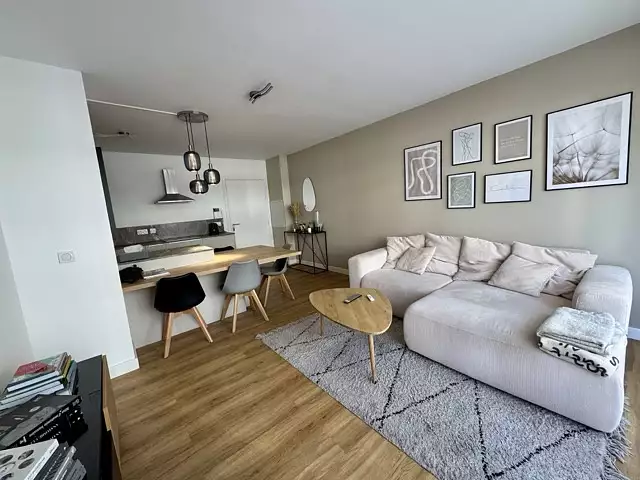 Possibilité d'acheter un garage en sous sol en sus du prix. Ce T3 offre de beaux volumes, une rénovation de qualité et contemporaine, une cuisine haut de gamme, une climatisation réversible. Idéal pour un jeune couple ou retraités qui rentreront sans aucun travaux à faire. Commodités à pied. Copropriété de 205 lots dont 85 logements. Copropriété sans procédure en cours. Charges annuelles : 2 016 € (chauffage, eau froide et chaude, entretien espaces verts et parties communes compris). CLASSE ENERGIE : C et CLASSE CLIMAT : C. Mandat 2021448CF. FAI. Honoraires à la charge du vendeur.