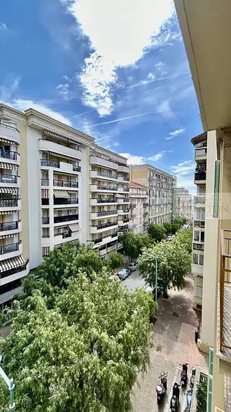 Au coeur de Menton, à 100 m du bord de mer, du club de tennis et des commerces, en étage élevé avec ascenseur, vaste deux pièces en parfait état, en angle, composé d'une entrée avec placard, cuisine semi-équipée, séjour, une chambre à coucher, une salle de bain (douche + baignoire), double vitrage dans toutes les pièces, volets en aluminium