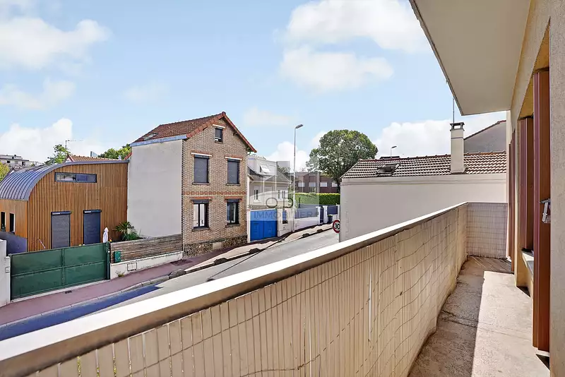 Le séjour donne accès à un balcon filant, deux chambres, une salle de bains et des WC séparés.