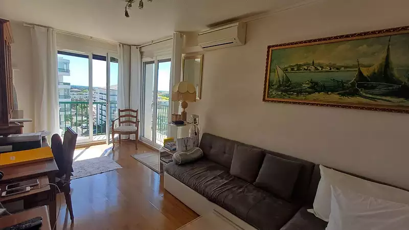 Il se compose d'un salon plein sud avec une belle vue dégagée, de 2 chambres avec placads, d'une cuisine séparée avec loggia, d'une salle d'eau avec douche et d'un toilette séparé.