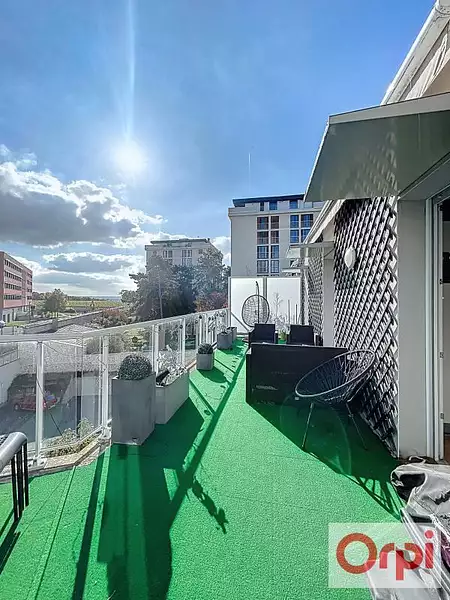 Sa grande terrasse de 21 m², exposée plein sud et équipée d'un store banne, offre un véritable prolongement de votre espace de vie.