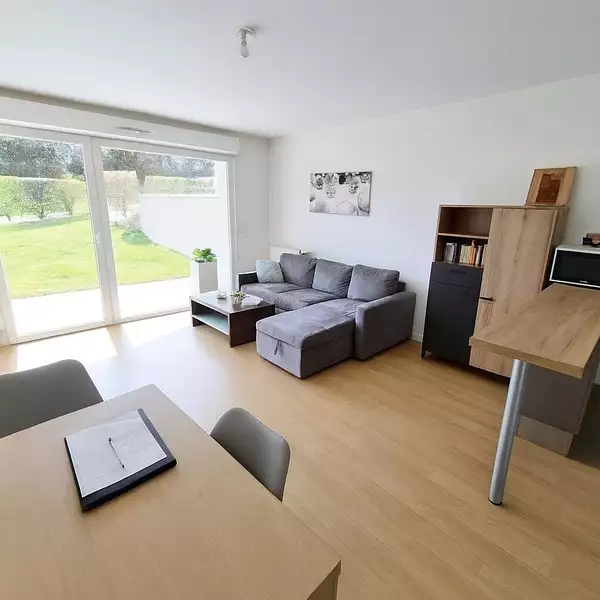 Saint-Avé – À proximité du bourg et des transportsDans une résidence récente (2016), découvrez ce T3 lumineux en rez-de-chaussée avec terrasse et jardin privatif.Il se compose d’une entrée avec placard, d’un séjour avec cuisine ouverte donnant sur l’extérieur, de deux chambres avec rangements, ainsi qu’une salle d’eau avec WC.Parking.
