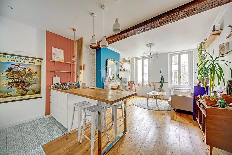 Romain WALKER vous présente ce magnifique appartement entièrement refait à neuf, situé rue Bonnenfant, à seulement 7 minutes à pied du RER. Au premier étage d'une petite copropriété à faibles charges, ce bien bénéficie d'une double exposition et se compose de la manière suivante : Un double séjour de 26 m² avec cuisine américaine équipée et cheminée, un dégagement avec placard desservant des toilettes, puis une chambre de 20 m² avec une spacieuse salle de bains attenante. (La simple pose d'une cloison permet la création d'une seconde chambre de 10 m² environ). Rénové avec des matériaux de qualité, ce coup de coeur en plein centre-ville, dispose également de deux caves, un débarras ainsi qu'un grenier. (4.50 % honoraires TTC à la charge de l'acquéreur.) Copropriété de 14 lots - dont 3 lots habitation.().