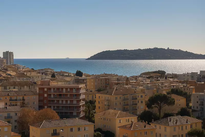 Situé dans un quartier calme et dans une résidence sécurisée. Appartement climatisé au dernier étage avec une terrasse de 17 m2 et belle vue mer, comprenant, séjour et cuisine aménagée, une chambre avec placard ouvrant sur la terrasse, salle d'eau, wc séparé, une chambre avec grand placard ouvrant sur un balcon, cave, 2 parkings privatifs.