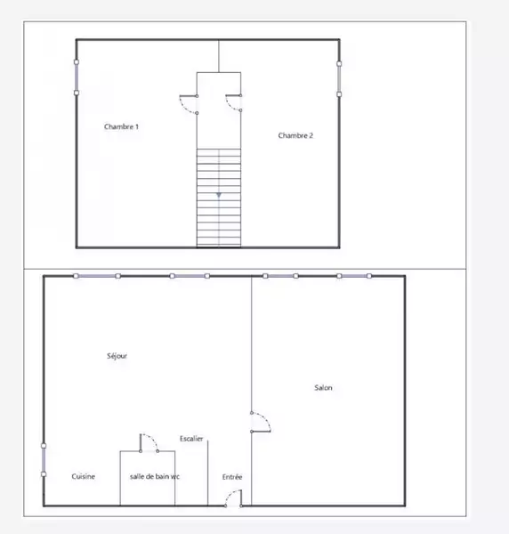Ce bien se compose actuellement de la manière suivante : au premier niveau, vous découvrirez un vaste salon-séjour avec cuisine ouverte, ainsi qu'un second salon, facilement aménageable en chambre supplémentaire, une salle d'eau et des toilettes séparées.