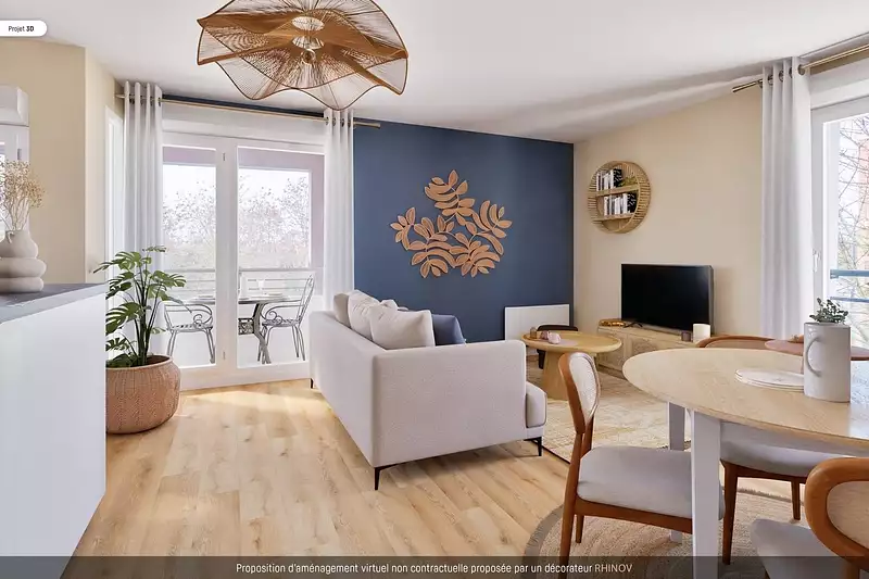 | 58,25 m² - 3 pièces - 2 chambres | 2ème étage avec ascenseur |
