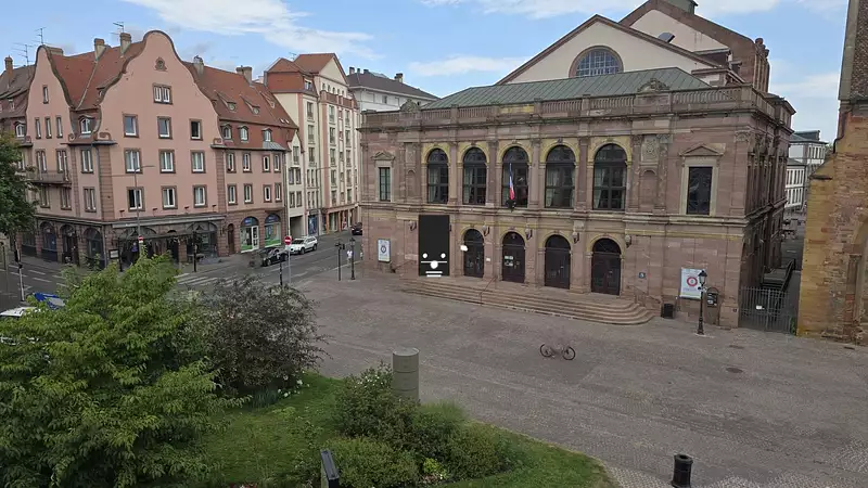 La vue est superbe, dégagée sur le théâtre municipal, ce qui rend l'appartement très lumineux. Exposition nord-ouest.