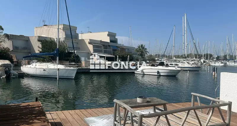 Marina entièrement rénovée au rez-de-chaussée comprenant une entrée, wc, une salle d'eau, une chambre, séjour avec cuisine équipée, une mezzanine pouvant faire office de 2 ème chambre terrasse fermée en véranda, quai privatif, accès direct à l'appontement de 4X12.50 mètres.