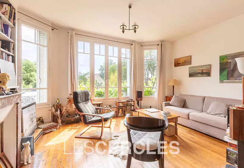 SOUS PROMESSE - Âme d'artiste pour ce charmant appartement à 500 mètres de la gare qui dispose d'un double séjour exposé plein sud, affichant tout le cachet architectural des années 1930 : bow-window, cheminée, parquet et garde-corps. Il comprend également une cuisine indépendante, une chambre avec cheminée et petit balcon, une salle de douche récemment rénovée avec toilettes, un hall d'entrée et un dressing. Une cave complète ce bien à deux pas des commerces, du marché et des restaurants. Plan 3D sur demande. Exclusivité LES CERCLES