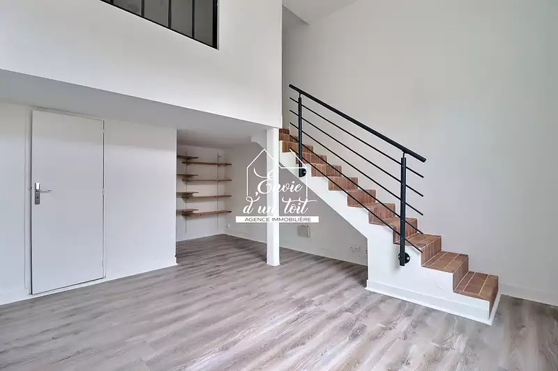 L'appartement se compose d'une entrée sur la cuisine équipée et aménagée, un couloir avec placard qui dessert un séjour avec une belle hauteur et luminosité, une chambre en mezzanine, une seconde chambre et une salle de douche avec wc.