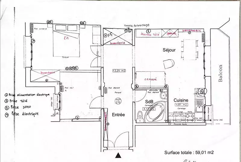 | 59 m² - 3 pièces - 2 chambres | Étage 6/7 |