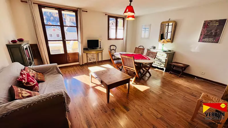 EXCLUSIVITE, ALLOS, A SAISIR Grand T3 centre Village de plus de 60 M², comprenant grand séjour/salon, cuisine, 2 chambres sdb et Wc, grand balcon de + de 10 m² exposé SUD et un GARAGE. 6 couchages. à pieds de tous commerces et des pistes de skis. charges de copro 130EUR/ mois, copro de 21 lots. REF 1655 Copropriété de 21 lots - dont 11 lots habitation. Charges annuelles : 1511 euros.