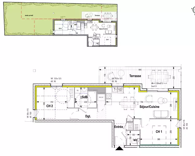 | 60 m² - 3 pièces - 2 chambres | Orientation : Sud |