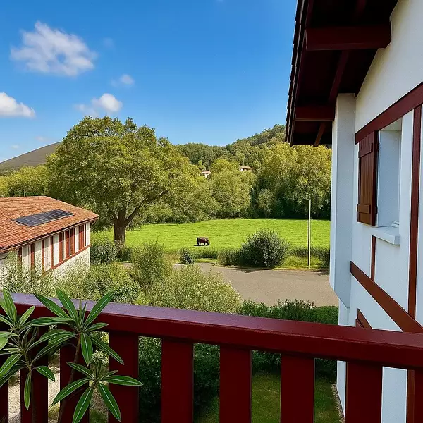 La pièce de vie avec sa cuisine entièrement rénovée ouvre sur une terrasse de 10m2 avec vue sur les montagnes et prairies. Le coin nuit est distinct avec ses deux chambres, sa salle de bain lumineuse avec fenêtre et son WC séparé.
