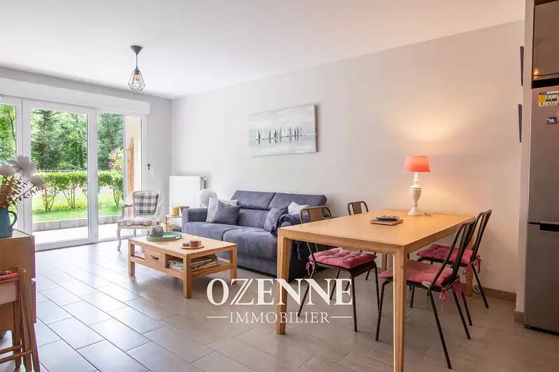 VENDU en Exclusivité par OZENNE Immobilier - Benerville Sur Mer, à 250 m de la plage et proche Deauville. | Dans un environnement calme et verdoyant, bel appartement 3 pièces de 60 m2 avec jardin privatif et terrasse ensoleillée.
