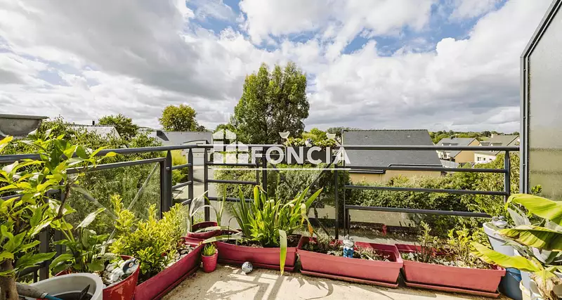 BOURGBARRE EXCLUSIF Appartement Type 3 60 m2 Utile dernier étage comprenant: entrée placard, cuisine équipée ouverte sur beau séjour donnant sur terrasse Ouest avec vue dégagée, buanderie, 2 chambres, salle d'eau avec meuble vasque, wc. Place de parking