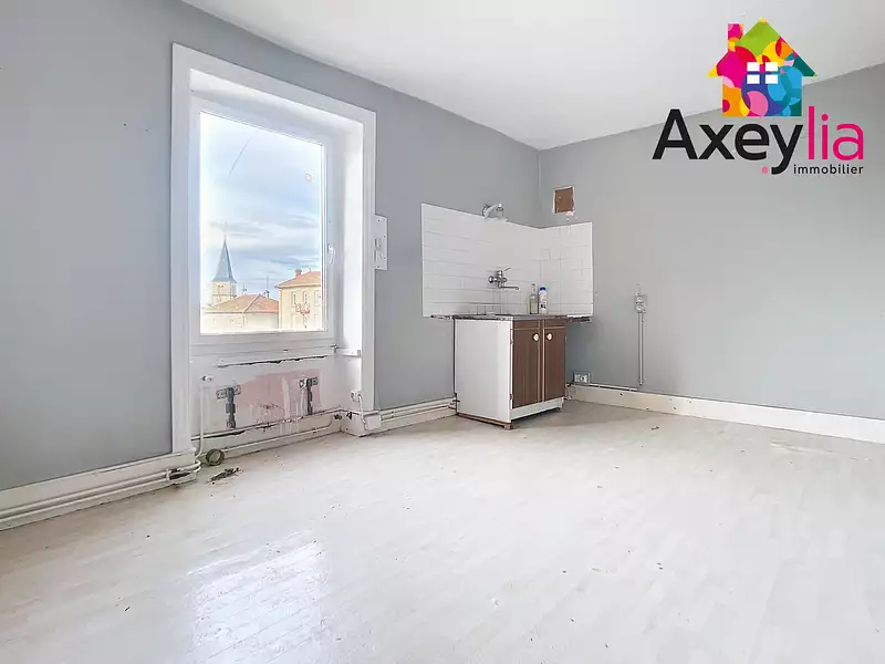 INFOS APPELEZ JULIEN 06 23 91 88 86 - A VENDRE - CUINZIER - AXEYLIA L'AGENCE À ST ROMAIN LA MOTTE, MEMBRE DU RÉSEAU NATIONAL EXPERTIMO, vous propose à moins de 10 minutes de Charlieu, au premier étage, cet appartement T2 à rafraîchir composé d'un grand salon/séjour, cuisine, chambre et salle d'eau/WC.