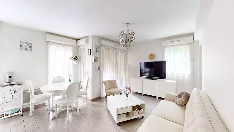 Très joli 3 pièces en rez-de-jardin dans une résidence sécurisée de 2013, proche de la Gare SNCF et des commerces. Il vous offre une entrée, une cuisine ouverte aménagée équipée, un salon donnant sur une terrasse et son jardin exposé SUD, 2 chambres, une salle de bains et un wc séparé. Deux places de parking en (une en sous-sol et une en extérieur). Copropriété de 121 lots - dont 54 lots habitation. (Pas de procédure en cours). Charges annuelles : 1440 euros.