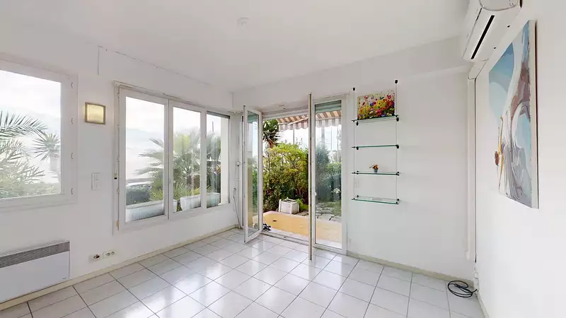 Le bien est en duplex, avec double accès, jardin privé et vue mer panoramique.