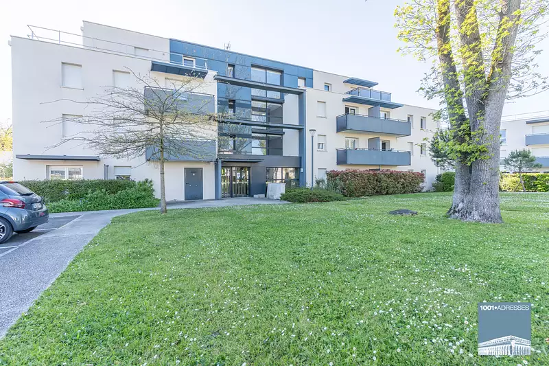 Exclusivité 1001 Adresses. Mérignac. 3-5 Chemin de Pagneau. Au sein d'une résidence contemporaine de 2016, composée de trois batiments - Au premier étage avec ascenseur, lumineux appartement de type trois pièces composé d'une entrée, cuisine américaine aménagée, pièce de vie donnant sur un balcon exposé ouest, deux chambres avec placards de rangement, salle de bains avec fenetres, wc séparés.