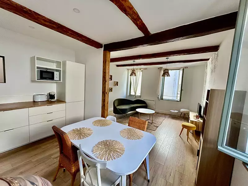 Agence Bellissimmo Narbonne vous présente en exclusivité : Narbonne Centre ; Situé au 2nd étage d'une petite copropriété, sublime appartement T3 de 60m² entièrement rénové avec beaucoup de cachet. Composé d'un séjour avec cuisine équipée ouverte, 2 belles chambres, WC et salle d'eau. Déco chic, idéal 1er achat ou pour location AirBetB
