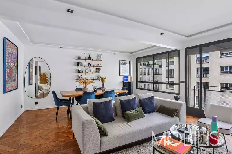 Dans le 16e Nord, proche du Bois de Boulogne et de toutes les commodités, au 5e étage sur cours d'un immeuble de 1957, appartement traversant de 58,72 m2 Loi Carrez, récemment rénové.