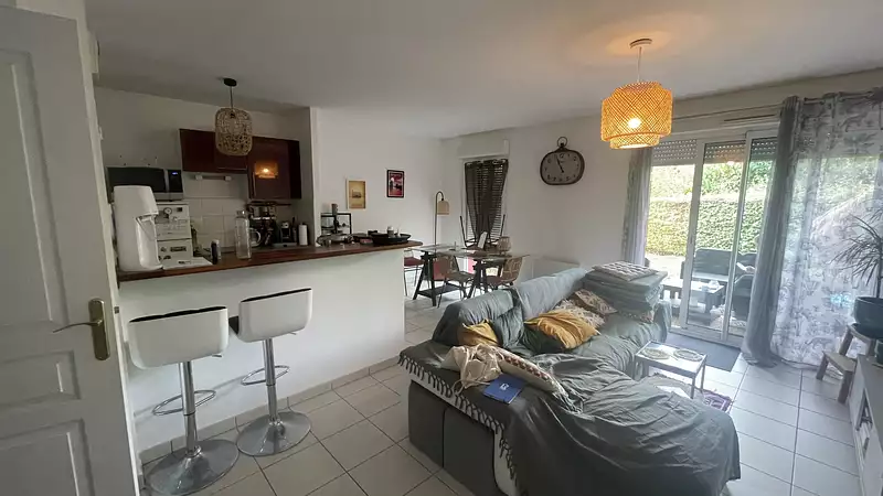 Il se compose d’une entrée avec placard, d’une agréable pièce de vie lumineuse avec cuisine ouverte, de deux chambres avec rangements, d’une salle de bains et d'un WC indépendants.